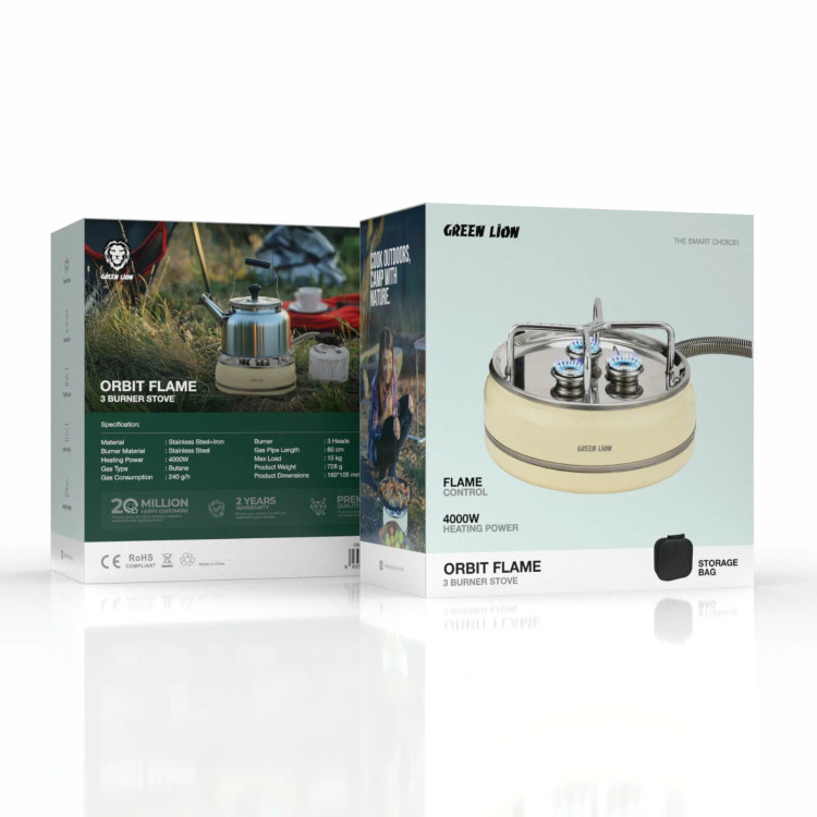 مینی اجاق گاز مسافرتی گرین لاین مدل Green Lion Orbit Flame 3 Burner Stove – Beige